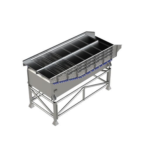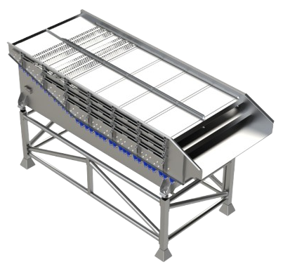 FoodeQ Engineering builds length sorting vibratory conveyors fully according to customer-specific requirements and product specifications. The Length Sorter 2.0 has been developed for the efficient removal of undersized products from a product flow and is suitable for a wide range of applications within the food processing industry.