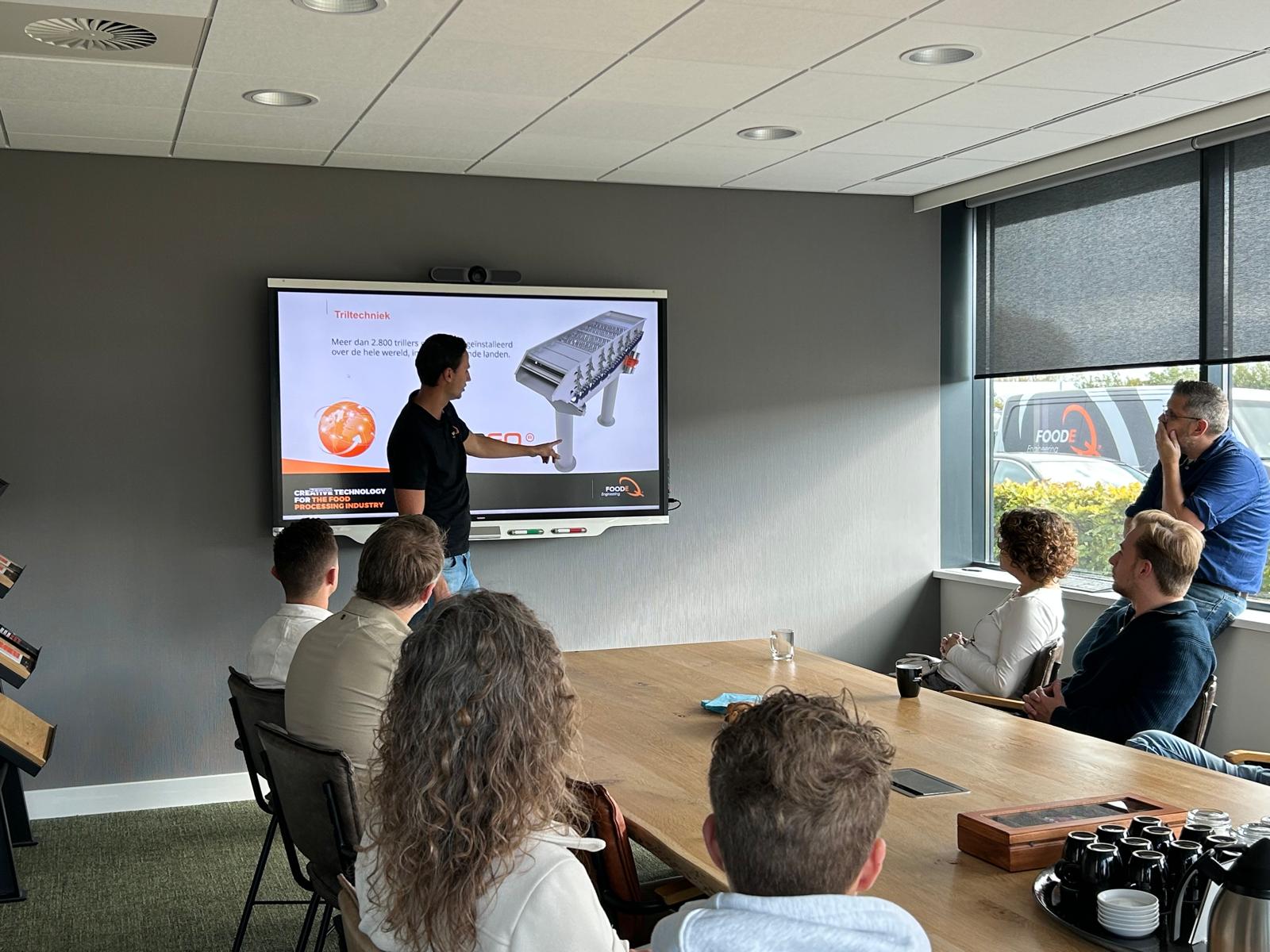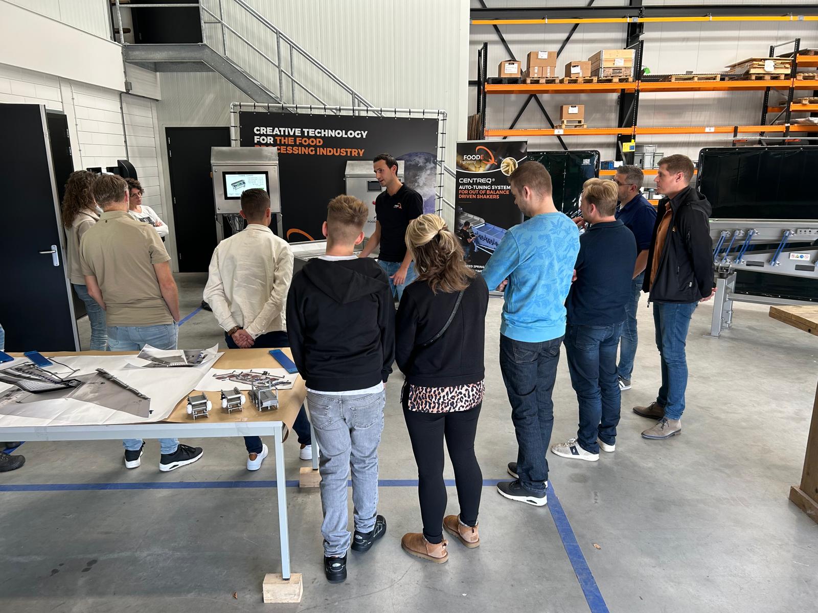 Deze middag hebben we onze gasten welkom geheten met een mooie presentatie over ons bedrijf en de toepassingen die FoodeQ kan bieden. Na de presentatie hebben we de groep meegenomen naar onze werkplaats. Hier stonden diverse machines opgesteld om nog beter uitleg te kunnen geven over de functionaliteit van deze apparaten. Na de daaropvolgende rondleiding door het pand zijn we met onze bezoekers geëindigd in onze gezellige kantine. Onder het genot van een hapje en een dranken hebben we deze informatieve middag gezamenlijk afgesloten. We kijken terug op een mooie opkomst en we hebben goede en interessante gesprekken kunnen voeren met de aanwezigen over onze technieken, nieuwe ontwikkelingen en carrièremogelijkheden die FoodeQ te bieden heeft.